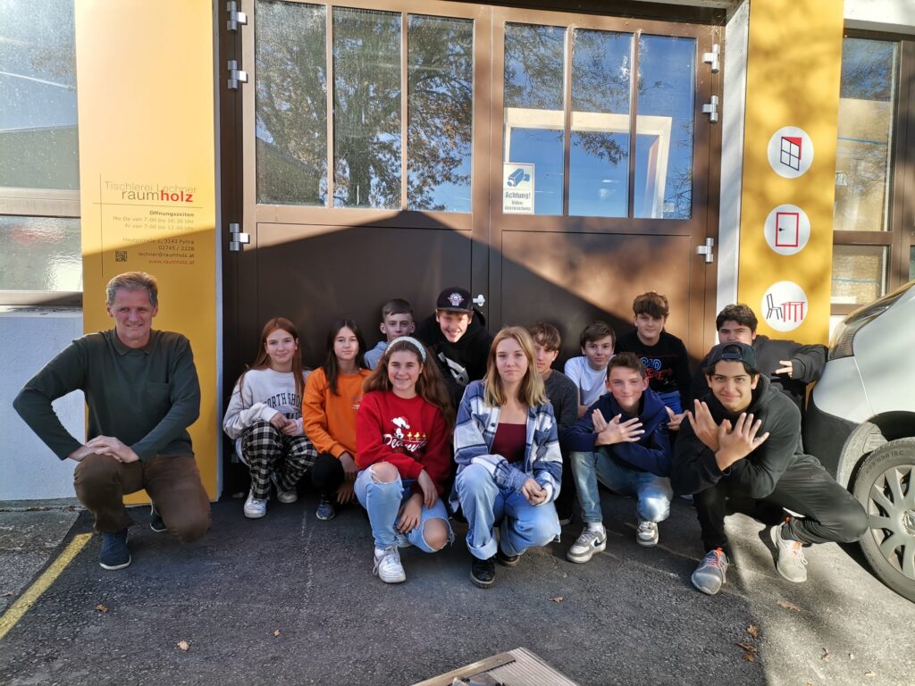 Am 14. November 2022 besuchten die Schülerinnen und Schüler der Berufsorientierungsgruppe der 3. Klassen die Tischlerei Lechner in Pyhra. Herr Lechner und seine Mitarbeiter nahmen sich Zeit um uns den Beruf des Tischlers vorzustellen. Wir erfuhren viel Neues und Wissenswertes. Wir sagen herzlichen Dank!