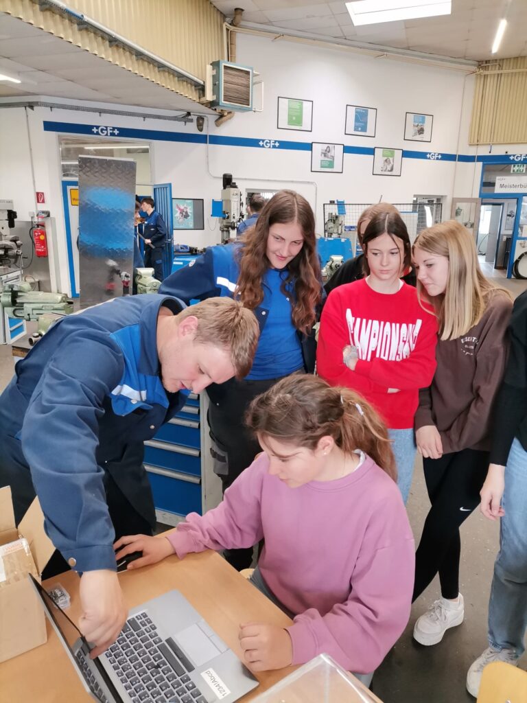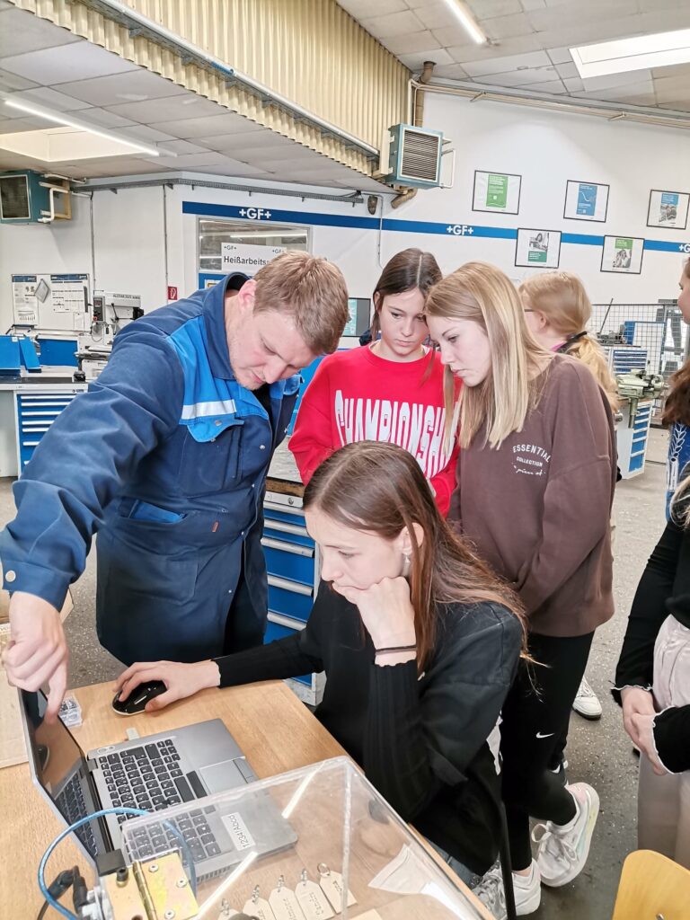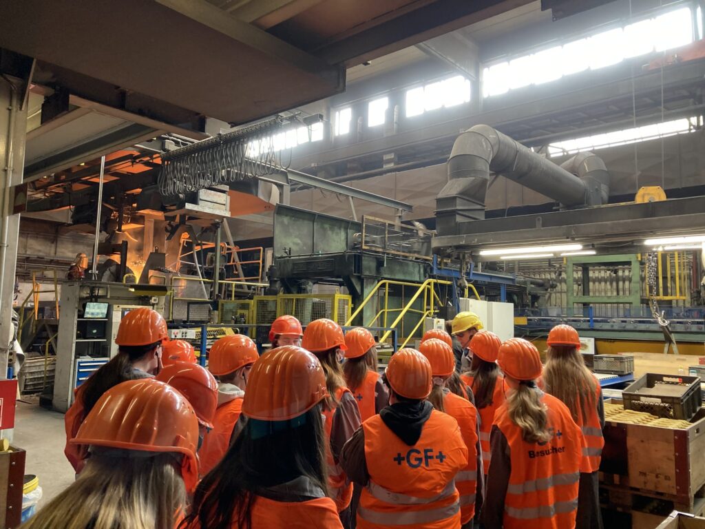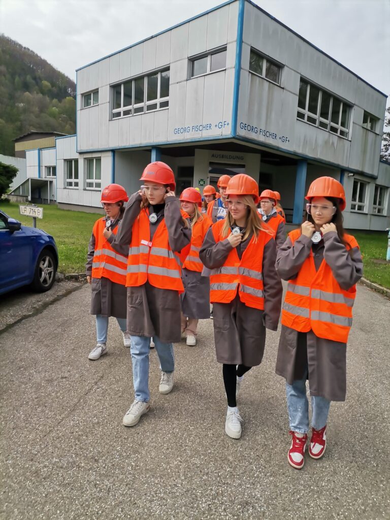 Am 27. April 2023 konnten die Schülerinnen der 3. Klassen im Rahmen des Girls‘ Day den metallverarbeitenden Betrieb Georg Fischer Fittings in Traisen besuchen. Der Ausbildungsleiter Herr Falkensteiner führte uns gemeinsam mit 4 Mitarbeiterinnen durch die Produktion. Besonders beeindruckend war dabei unter anderem der der Kupolofen. Anschließend konnten die Schülerinnen in der Lehrwerkstatt mit einem Laserdrucker Schlüsselanhänger anfertigen. Vor einer abschließenden Fragerunde wurden wir mit Schnitzelsemmeln und Getränken verköstigt.